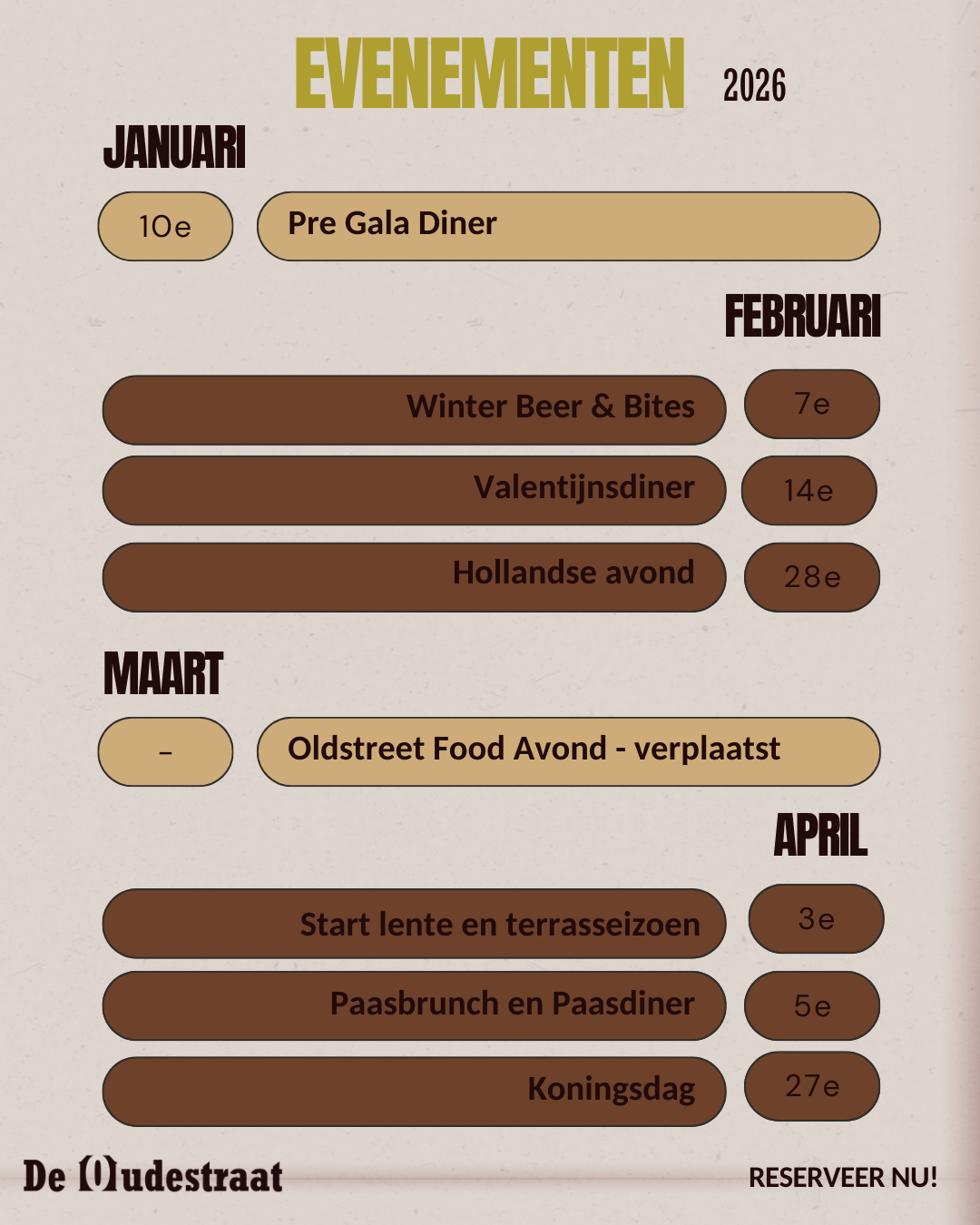 Welkom bij De Oudestraat aan de Oudestraat. In dit karakteristieke pand, herkenbaar door zijn vorm en kleur, is een nieuwe plek ontstaan waar gastvrijheid en gezelligheid centraal staan. Bij ons draait het om meer dan alleen lekker eten; we willen dat je je helemaal thuis voelt. Hier geniet je van gerechten die met passie en aandacht zijn bereid. Of je nu komt voor een ontspannen diner, een borrel met vrienden of een speciale gelegenheid, bij De Oudestraat zorgen we voor een unieke beleving. Of je nu iets nieuws wilt ontdekken of juist verlangt naar iets vertrouwds – je bent van harte welkom!